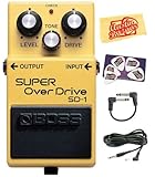 Boss SD-1 Super Overdrive Pedal Bundle with 10-Foot Instrument Cable, Patch Cable, Pick Card, and Polishing Cloth