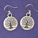 - Silver-plated, two-sided tree of life charms hang from french style earwires